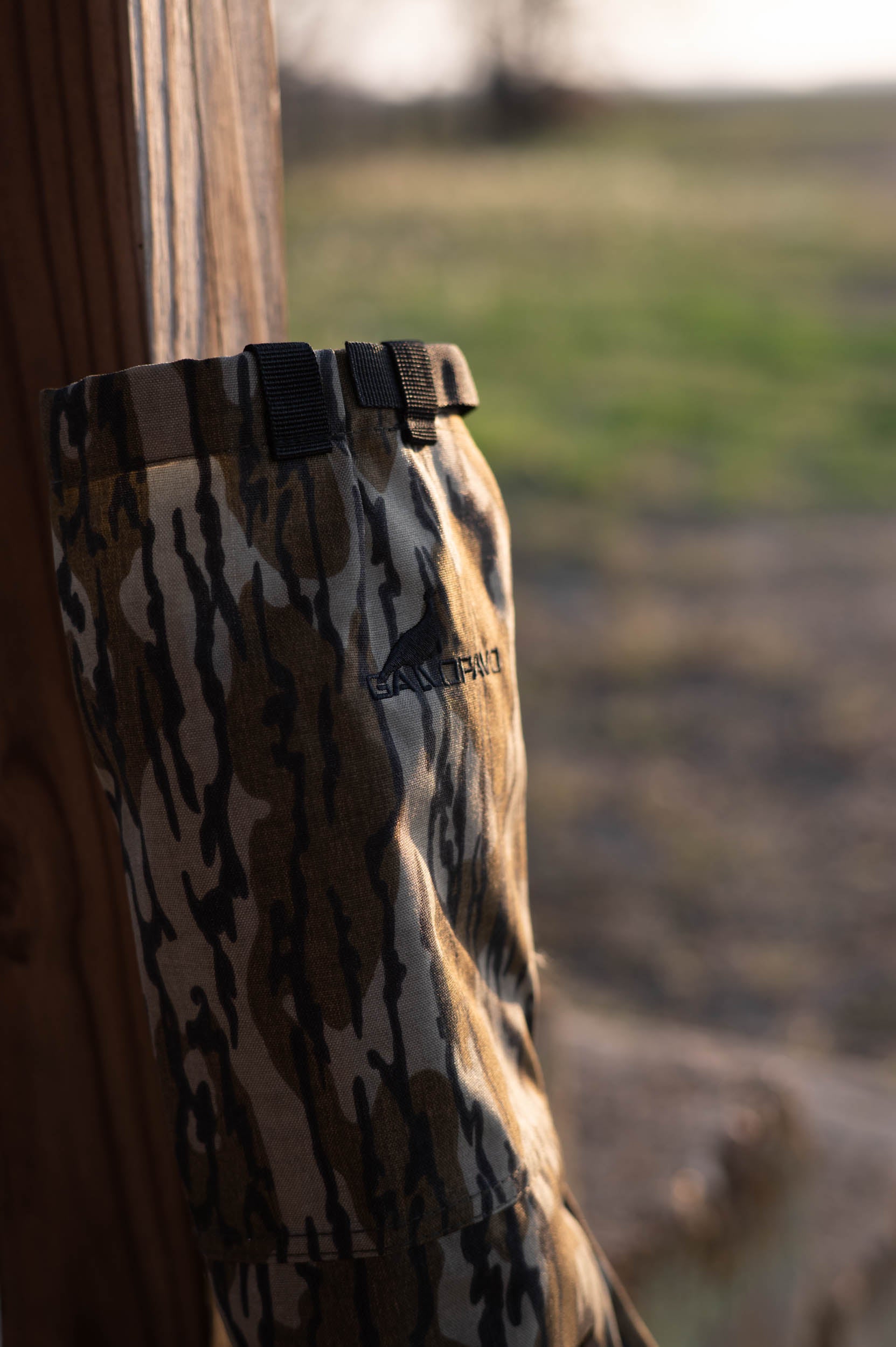 Designed for Turkey hunters and outdoor enthusiasts, these durable leg gaiters provide essential lower-leg protection in rugged environments. Featuring the iconic Mossy Oak OG Bottomland camo, they blend seamlessly into wooded terrain for optimal concealment. Constructed from tough CORDURA, water-resistant fabric, they shield against mud, briars, and moisture while maintaining breathability. A secure adjustable strap system and reinforced boot hooks ensure a snug, tapered fit, making them ideal for any hunting situation braving harsh weather conditions.
